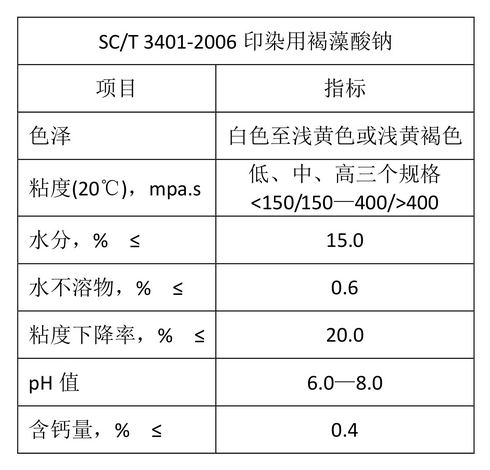在印染行业中,海藻酸钠用作活性染料色浆,优于粮食、淀粉和其它浆料。印出的纺织品花纹鲜艳,线条清晰,给色量高,得色均匀,渗透性与可塑性均良好。褐藻胶是现代印染业的优良浆料,现已广泛应用于棉、毛、丝、尼龙等各种织品的印花,特别适用于配制拔染印花浆。还可用作经纱上浆料,不仅可以节约大量粮食,而且能使经纱的纤维不起毛,耐摩擦,断头率少,从而提高织布效率,对棉纤维和合成纤维均有效。